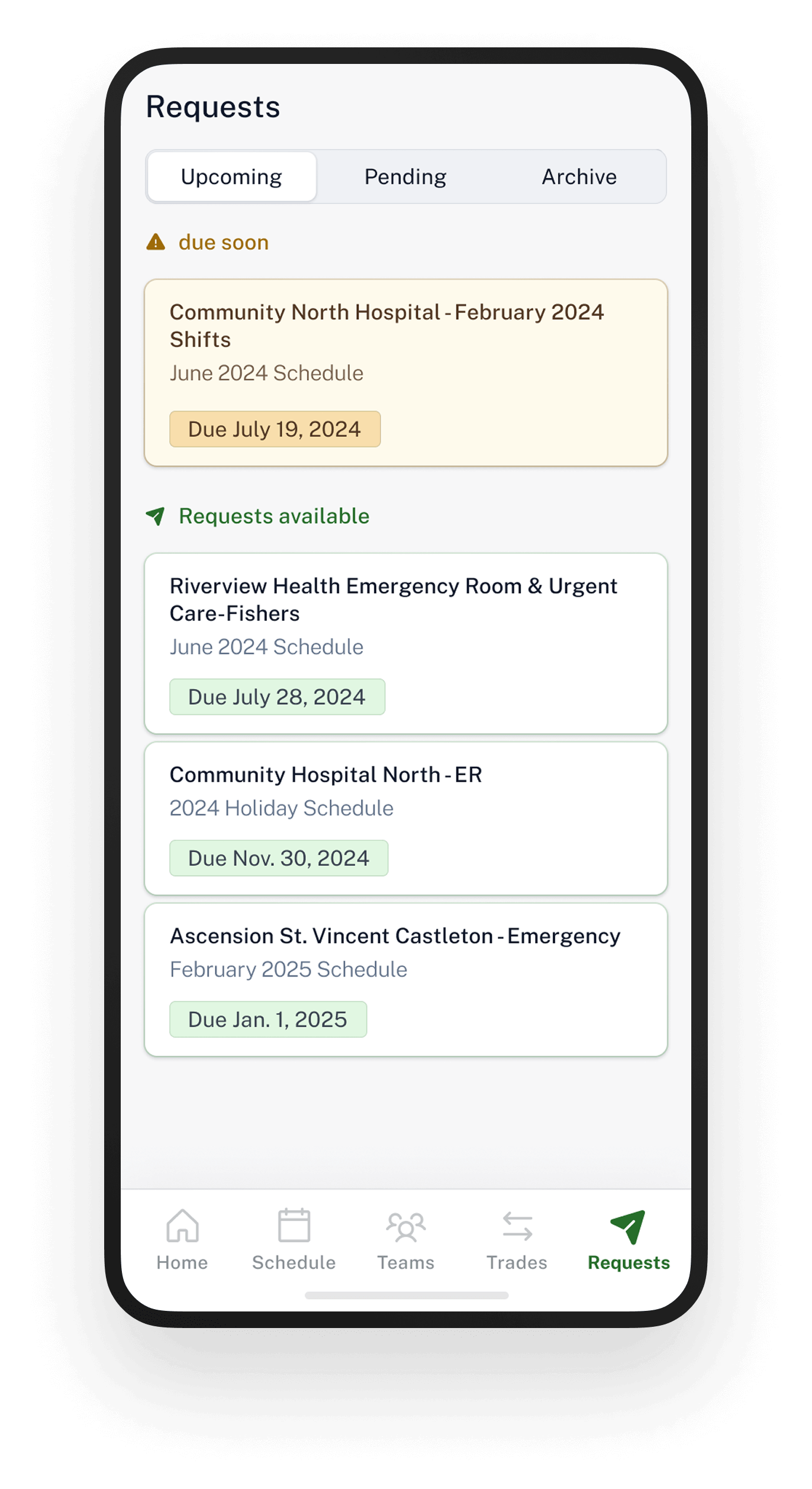 - Shift-based Inpatient Services (Hospitalists, Surgeons, Obstetricians)